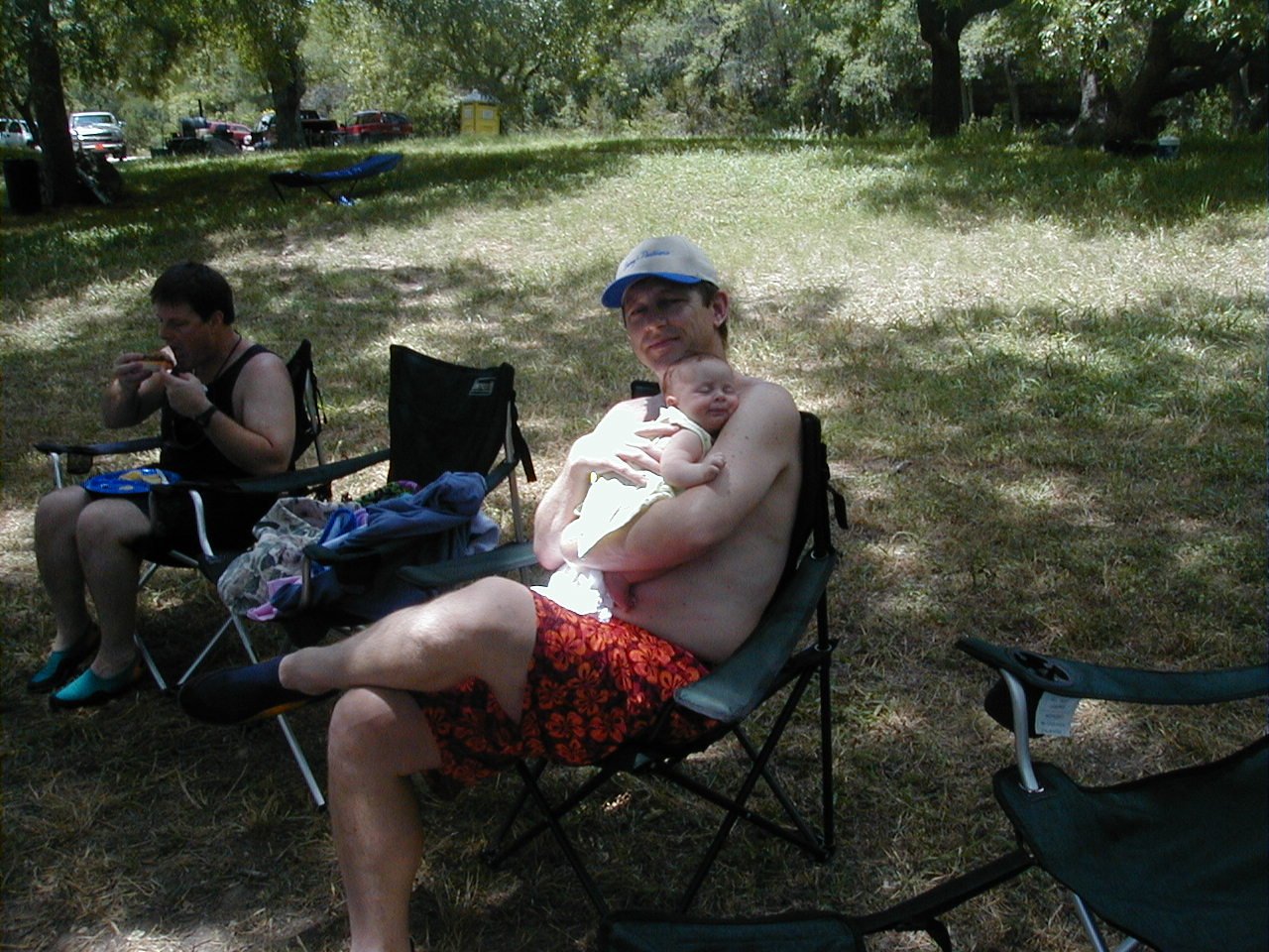 Proud Papa . . . while Ken catches an Earl Campbell Hot Link . . .